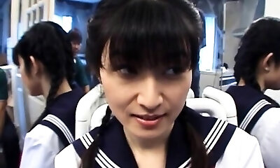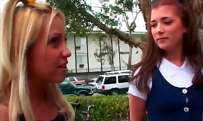 Pretty coed damsel in uniform Elsa Jean gets fucked by tall Milf and stud