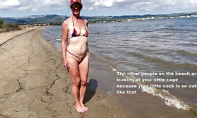 Big-chested mature dominatrix and her submissive thrall