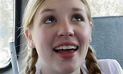 Young whore student gets fucked by an older boy right on the bus in public
