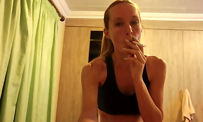 Amazing ash-blonde smokes and gives blowjob