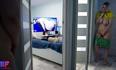 Sandy-haired BBW with Big Boobs Blowjob Tittyjob Facial