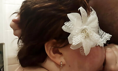 Curvy short-haired slut is so hungry for a cock, she sucks me in the shower, gulps all the cum