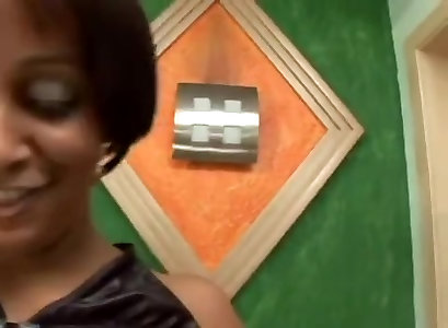 Cute Slim Ebony Beauty Takes Advantage Of Her Crotchless Shorts To Try a Guys Big Cock With Her Ass
