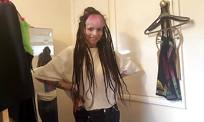 heißes blauhaariges goth-mädchen wird von einem riesigen schwanz geschlagen und stöhnt vor vergnügen