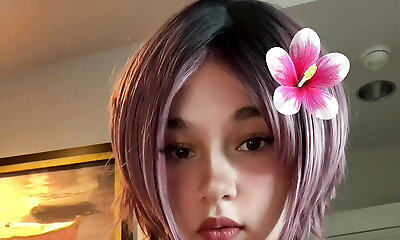 cutie mit blauen haaren zeigt titten und spielt vor der webcam herum