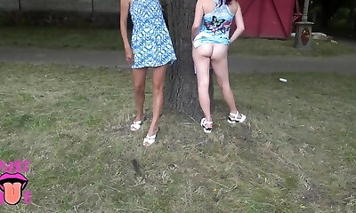 Two Girls Flashing Pussy In Public Park, Upskirt No Panties