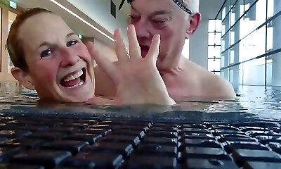 Outdoor gang screwing by the pool with mature Nela Decker & Petra