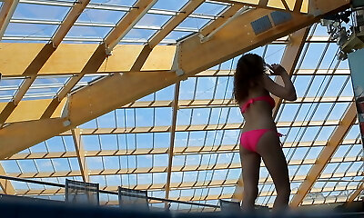 Big Ass and Big Tits Platinum-blonde Teen At The Pool in High Heels!