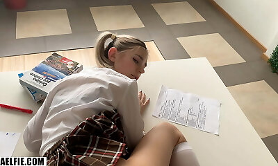 Naughty blonde teenage is fucked silly by her teacher in class